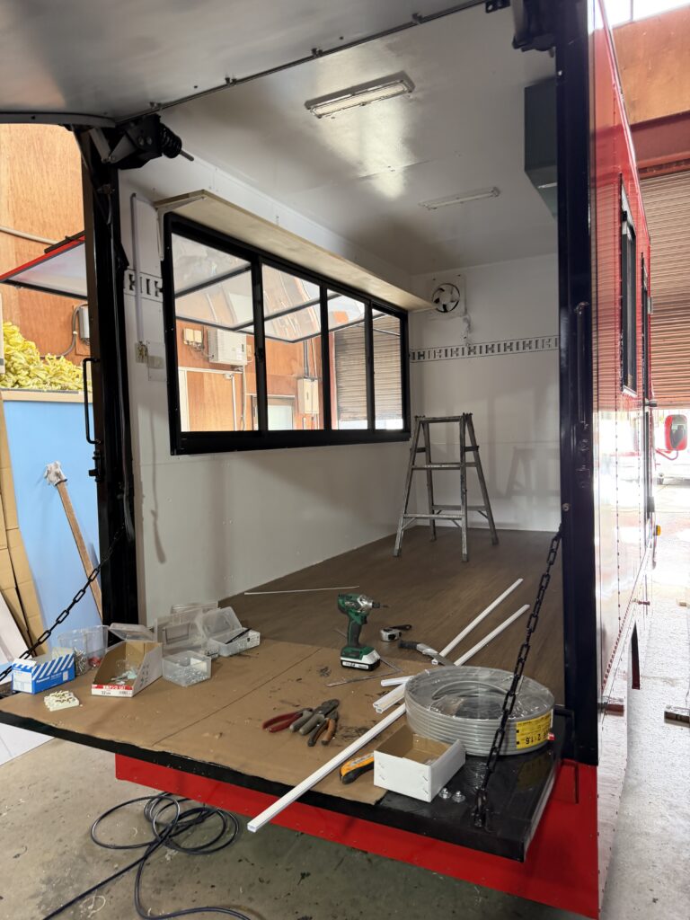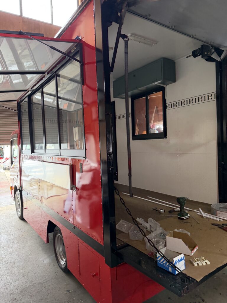 赤黒ツートンカラーのエルフ キッチンカー製作。